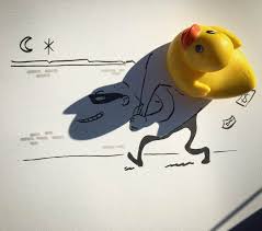 - Zoek een mooie schaduw, teken hem af op een blad en ... doe er iets mee! (zie badeendje hieronder)