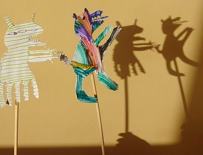 - Maak een schimmentheater. Wit doek. Licht erop langs voor. Jij erachter.